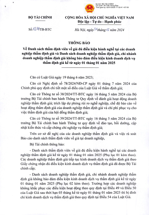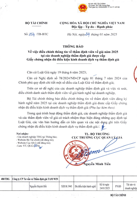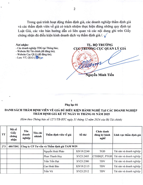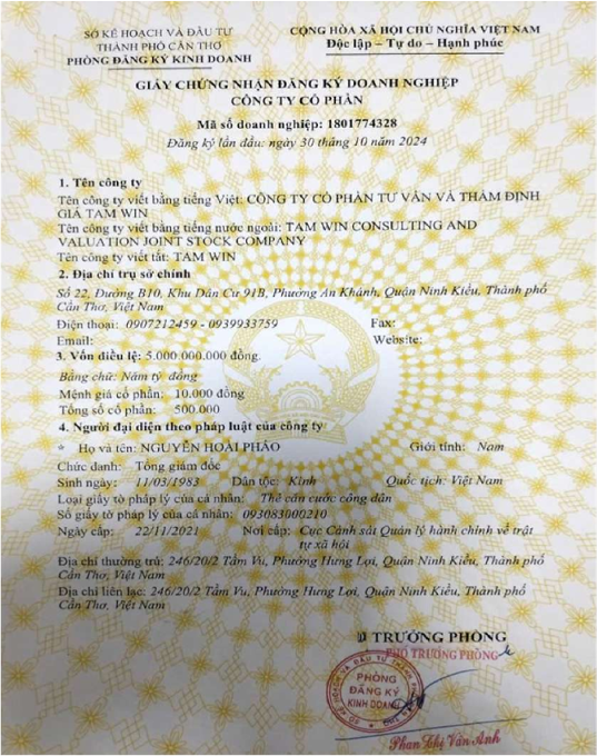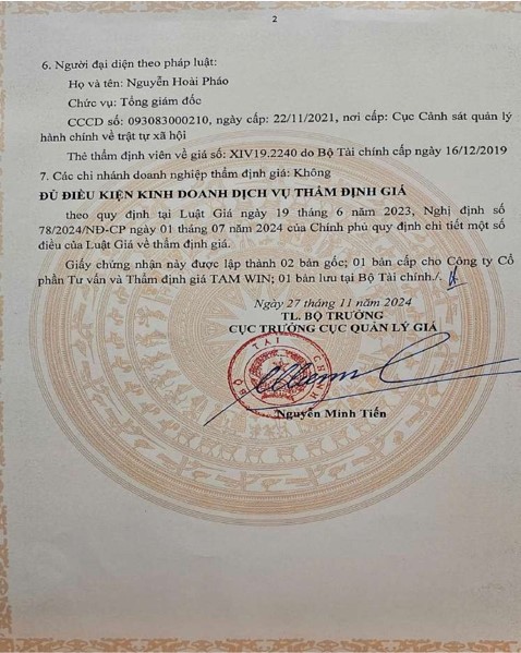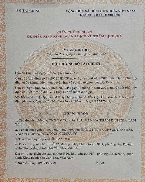 GIẤY CHỨNG NHẬN KINH DOANH DỊCH VỤ THẨM ĐỊNH GIÁ